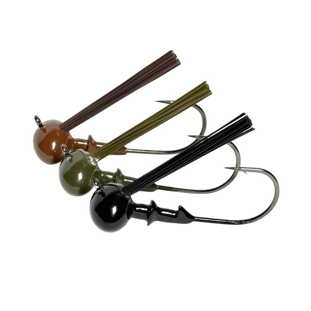 The BAIT CONN Light Wire Weedless Football Jig Head is a must have for large bass! 3 Incredible colors paired with Light Wire Hooks will land tons of fish.