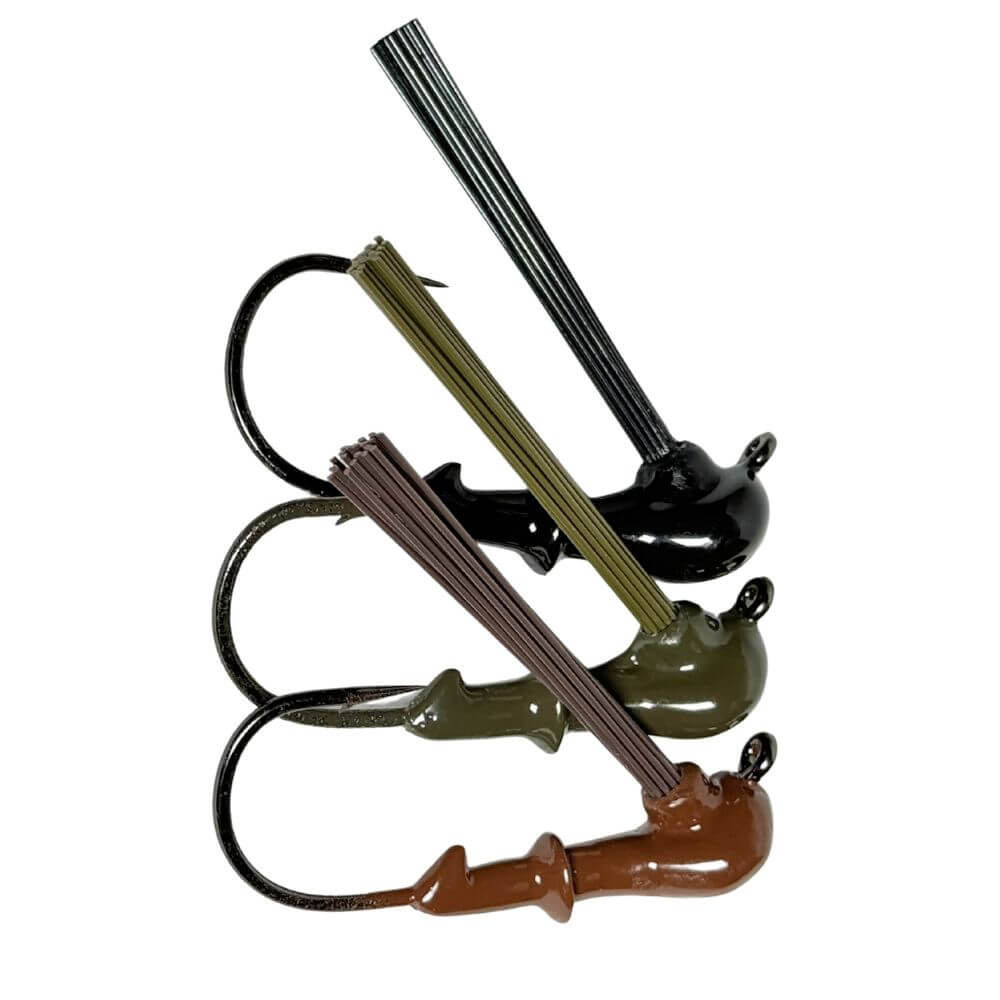 The BAIT CONN Weedless Arkie Jig Head comes in a 3 pack in 4 different sizes and 4 different colors all using Mustad Ultra Point Hooks.
